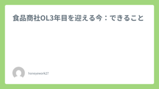 管理栄養学生の日常 食品商社OL3年目を迎える今:できること 2026年2月3日 honeyework27 https://nanotsubuyaki.com/wp-content/uploads/2021/08/2dabefd2fef8dad120001852cfc99220.png なぁのつぶやき